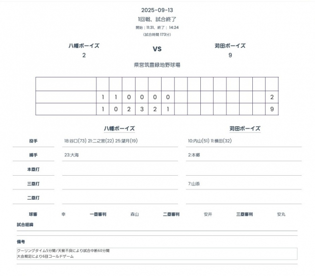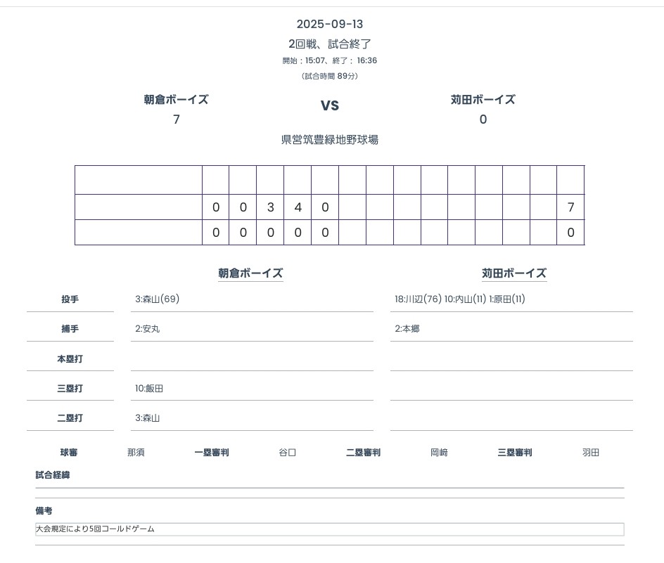 一回戦目、八幡ボーイズ様との戦いを突破し、二回戦目、朝倉ボーイズ様に挑みますが、得点に繋がらず⋯敗退してしまいました。
