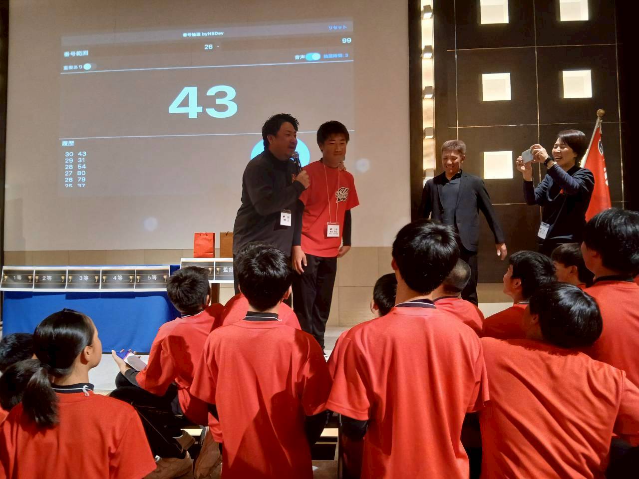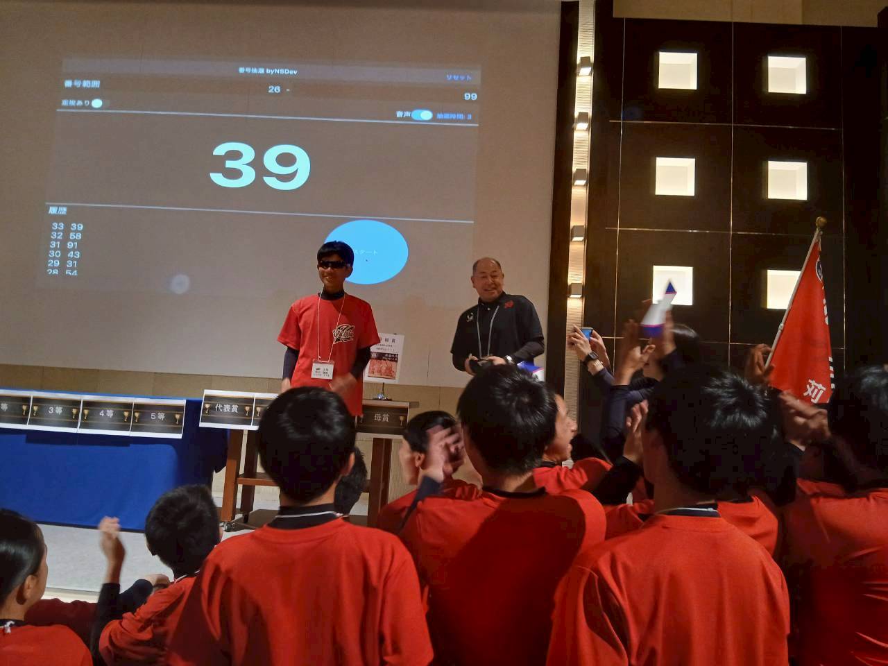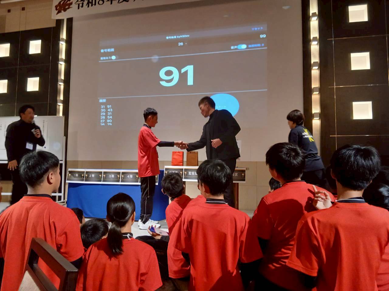 各学年1人ずつの挨拶、抽選会等があり大盛り上がりでした。